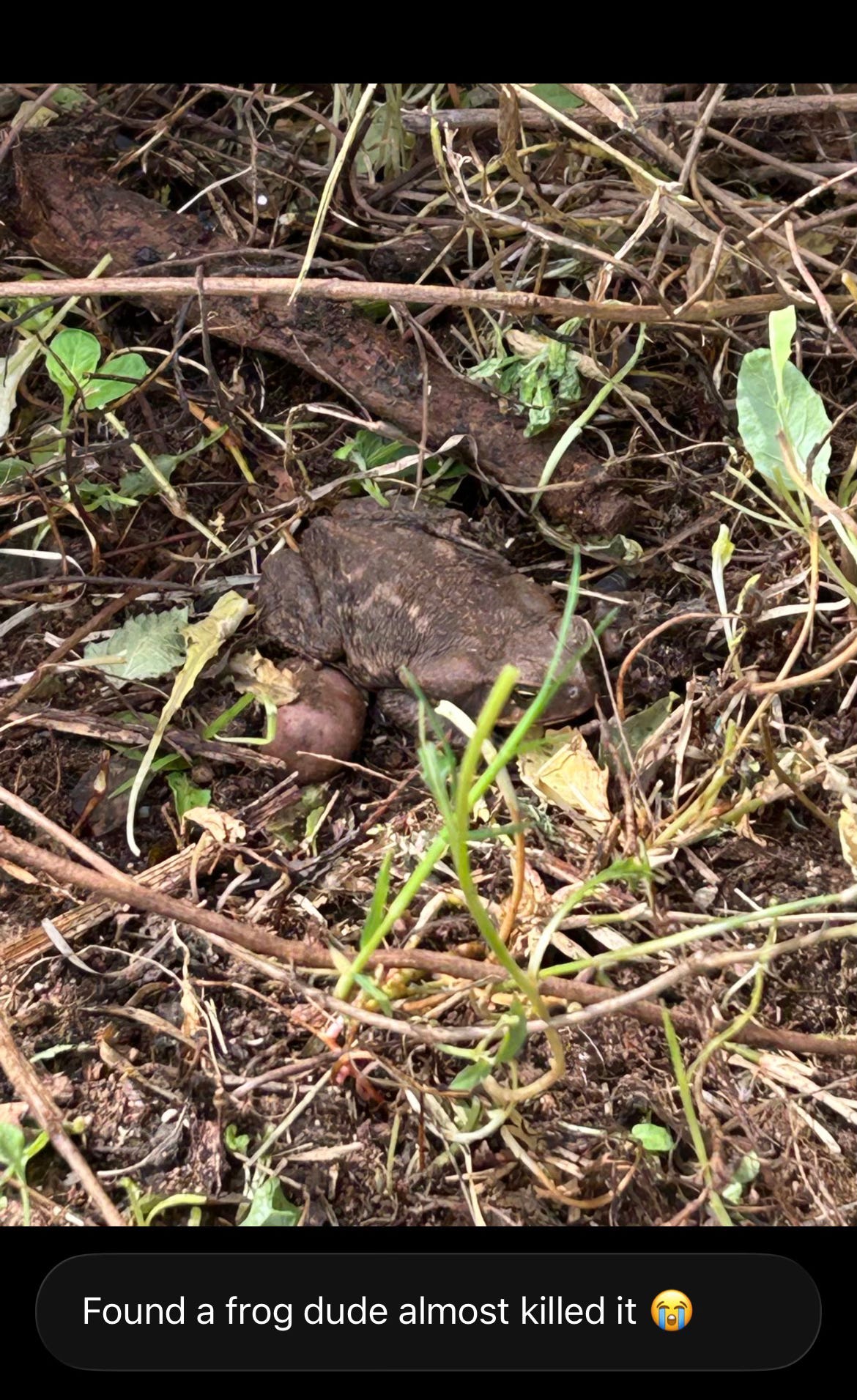 I have much more energy and motivation when in a vigorous exchange of voice notes with my best friend. I listen to her complain about the shitty bouquet of flowers she purchased at Walmart and her attempts to save the best of it while I continue to dig my gloved fingers into the soil ripping weeds and overgrown buttercups from their roots. The sun is hot on my back, our puppy watches me dig into the dirt and she runs off to chase after a bird, my three year old watches me through his long golden brown hair as I laugh at no one or nothing in particular as the voice note plays through my headphones now beginning to slide off my head from the sweat and effort. She sends me a picture of the colorful bouquet lovingly placed in a vase on her kitchen table and I send her back a picture of a frog I found under the weeds and buttercups. I tell her I didn’t see it and fear I could have hit it with my shovel and killed it. “It looks pretty alive to me,” she laughs.