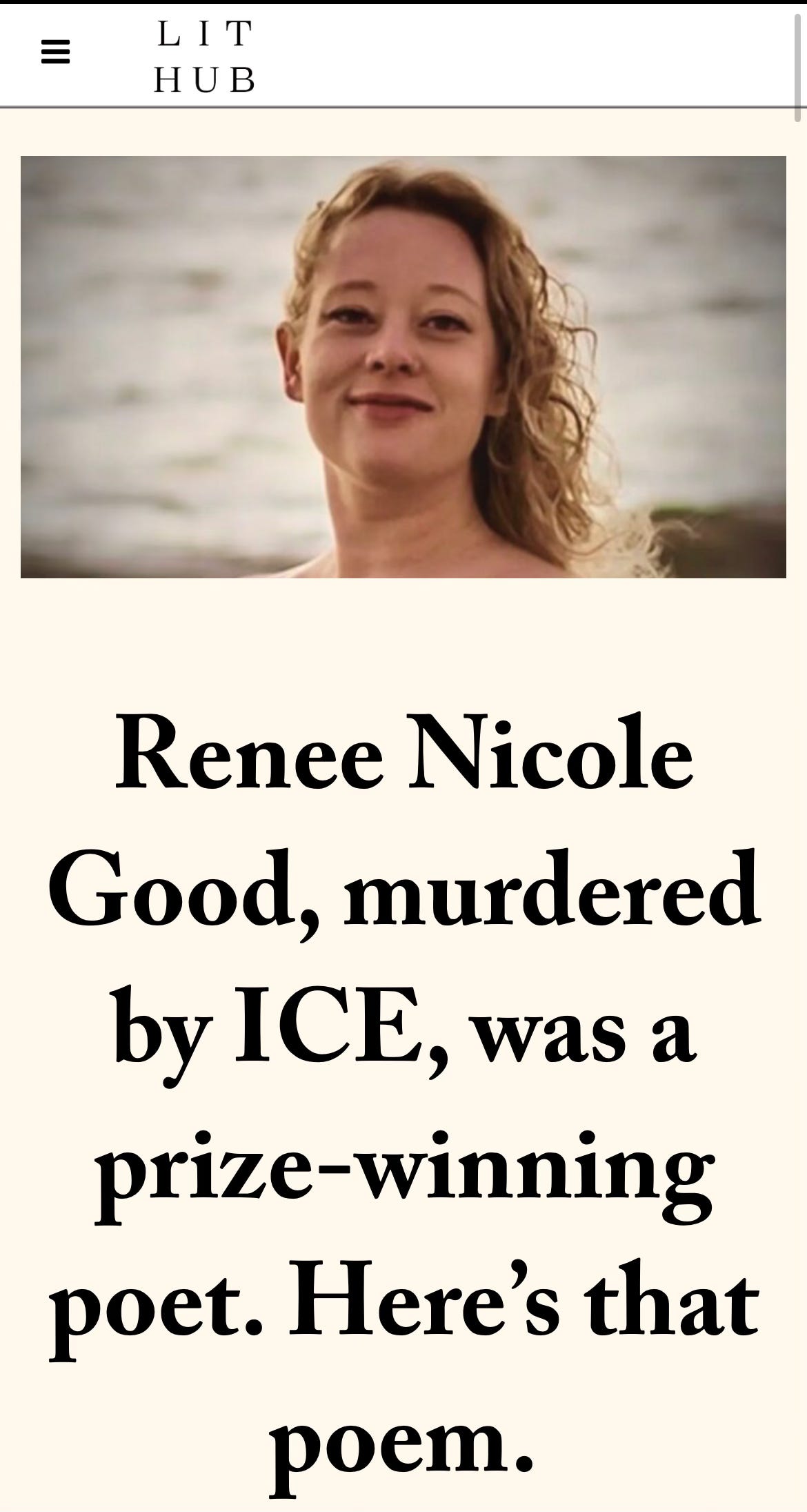 Renee Nicole Good was a, “Poet and writer and wife and mom and shitty guitar strummer from Colorado; experiencing Minneapolis, MN.”